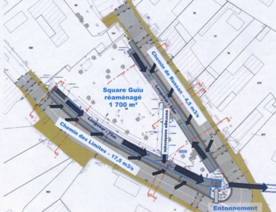 La mise en place des entonnements entrainera l’artificialisation du sol du square, le remaniement du profil des rues, la limitation de la circulation piétonne. L’existence des arbres centenaires qui conditionnent l’identité et les rôles du square Guïu est mise en question.