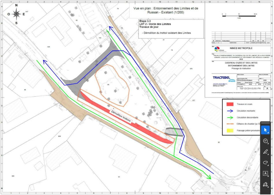 Selon les plans fournis, la phase chemin de Russan verrait la circulation descendante traverser le square, ce qui n’a aucun sens car l’auteur de ce plan avait oublié que pendant des mois la circulation descendante avait été déviée par le chemin du Mas du Diable. Par conséquent, la stratégie décrite ci-dessous est nulle et non avenue.